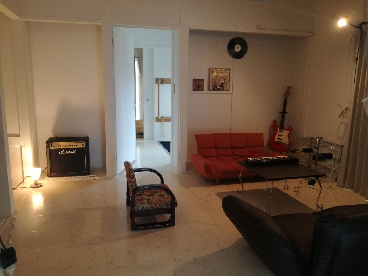 そこは客間でね、ギターとアンプはインテリアにしてるだけよ。